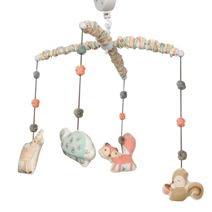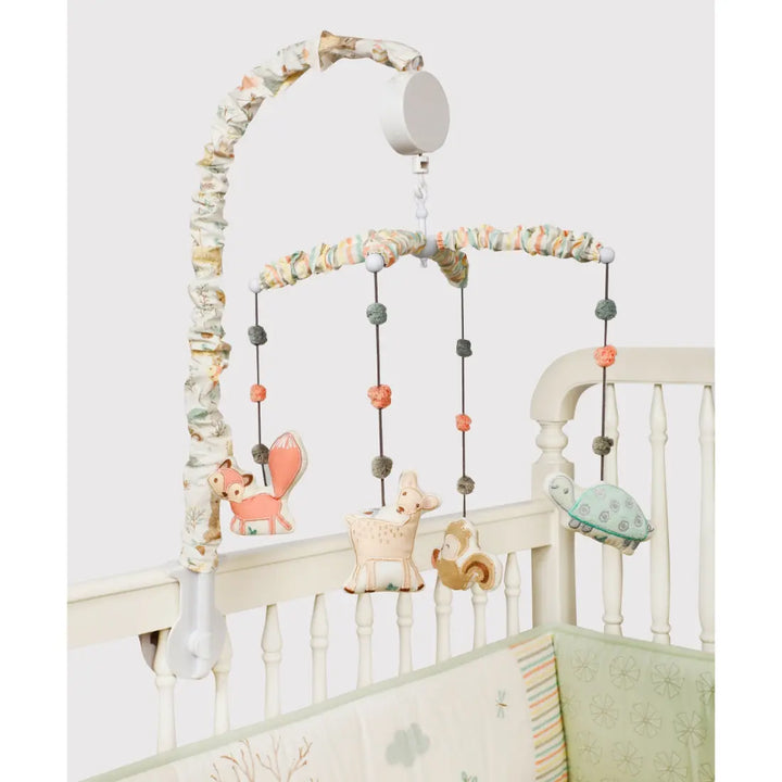 Powered by a winding key mechanism, this mobile does not require batteries. Simply wind the mechanism to play a familiar melody, providing a perfect balance to help your baby stay calm and sleep soundly.