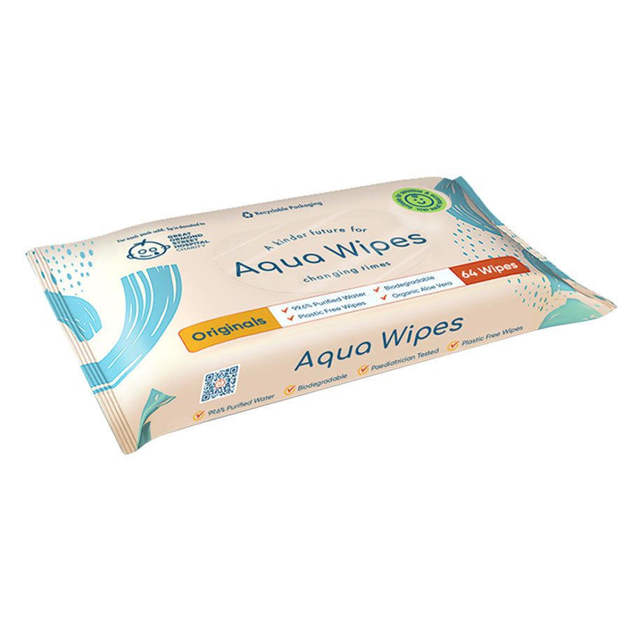 Aqua Wipes Originals 99.6% Purified Water Baby Wipes (64 pcs)