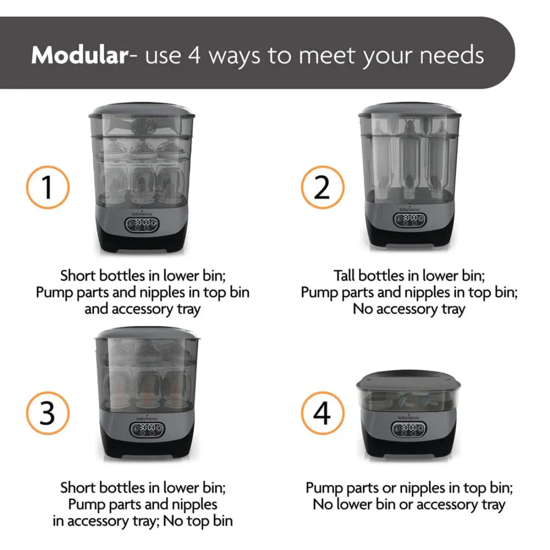 - 4 in 1 functionality: Use as Sterilizer Only, Sterilizer and Dryer, Dryer Only, or Storage System.