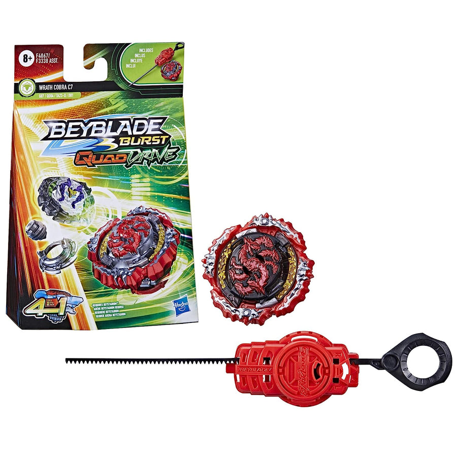 CUSTOMIZE THE CLASH: Includes left-spin Beyblade Burst QuadDrive Wrath Cobra C7 G07 QD04 TA23-Q D01 top and launcher. Customize top to Core and Apex mode for attack type or to Core+ and Apex+ mode for defense type