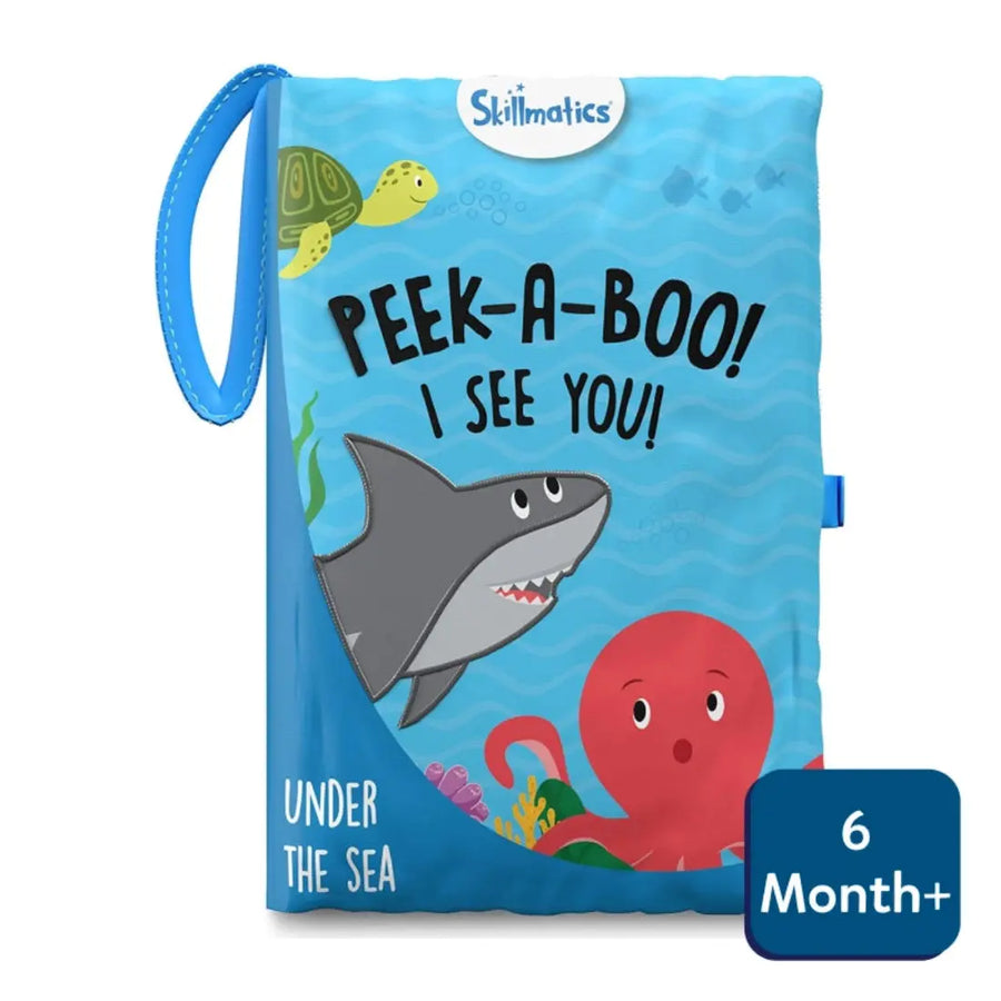 The Skillmatics Peek-A-Boo! I See You! Fabric Book is more than just a toy; it's a tool for sensory exploration and early learning. Dive into an underwater adventure with this durable, engaging cloth book and support your baby's developmental journey.