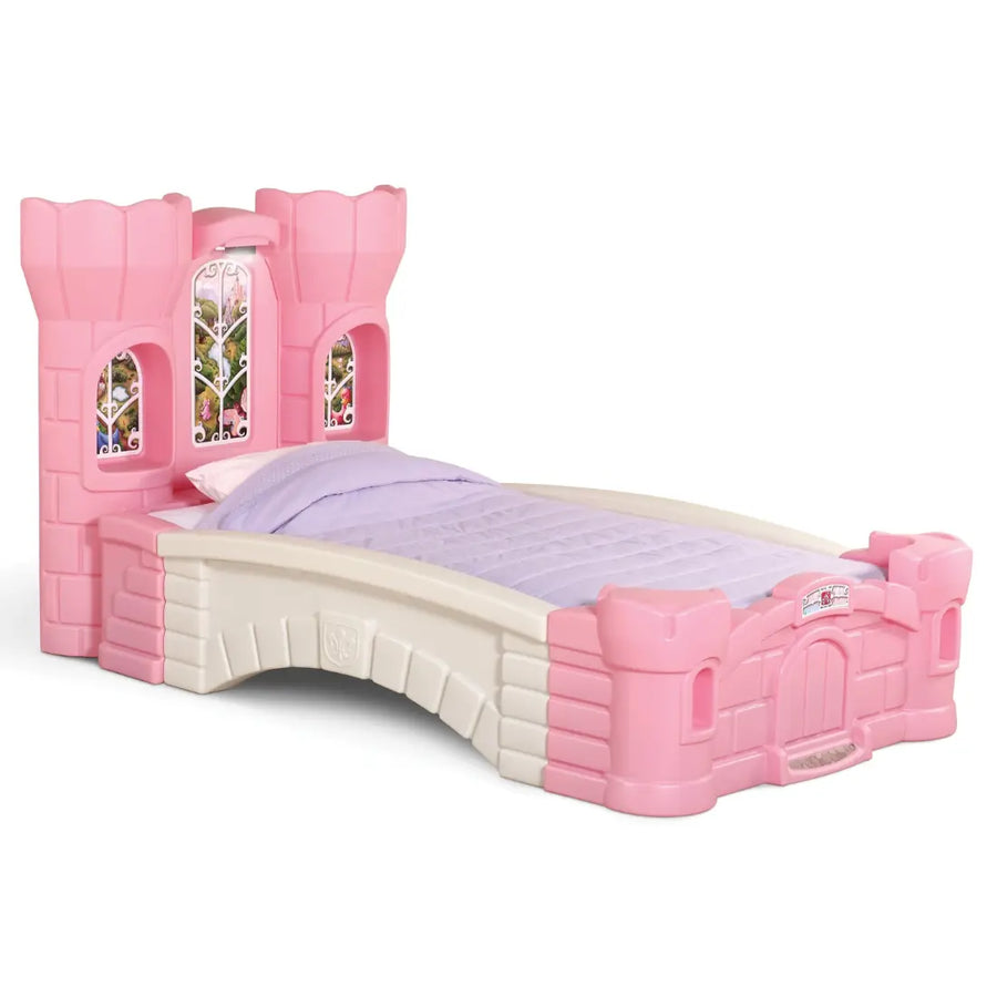 - Headboard with Twin Towers: Features “windows” with a scenic “view outside the castle”.