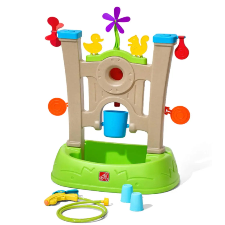 Bring exciting arcade-themed water play fun to your backyard with the Step2 Waterpark Arcade! Tons of kids’ water game targets are lined up and ready for little ones to splash them down with the water blaster, all secured with a large wall and wide base for extra stability. Easily attach the water blaster to a standard garden hose to get the water flowing and begin outside water game time! Little ones will practice their fine motor skills as they squeeze the trigger to use the water blaster to shoot water at each target, knocking them down and activating the spinners to create a big splash. Hit the center bullseye to fill up the spill bucket below – whoever makes the bucket spill into the basin is the winner! The water game for kids’ single-user style is a great way to teach little ones about sharing, patience, and even kindness by cheering friends on as they hit each target. Made in the USA of US and imported parts.