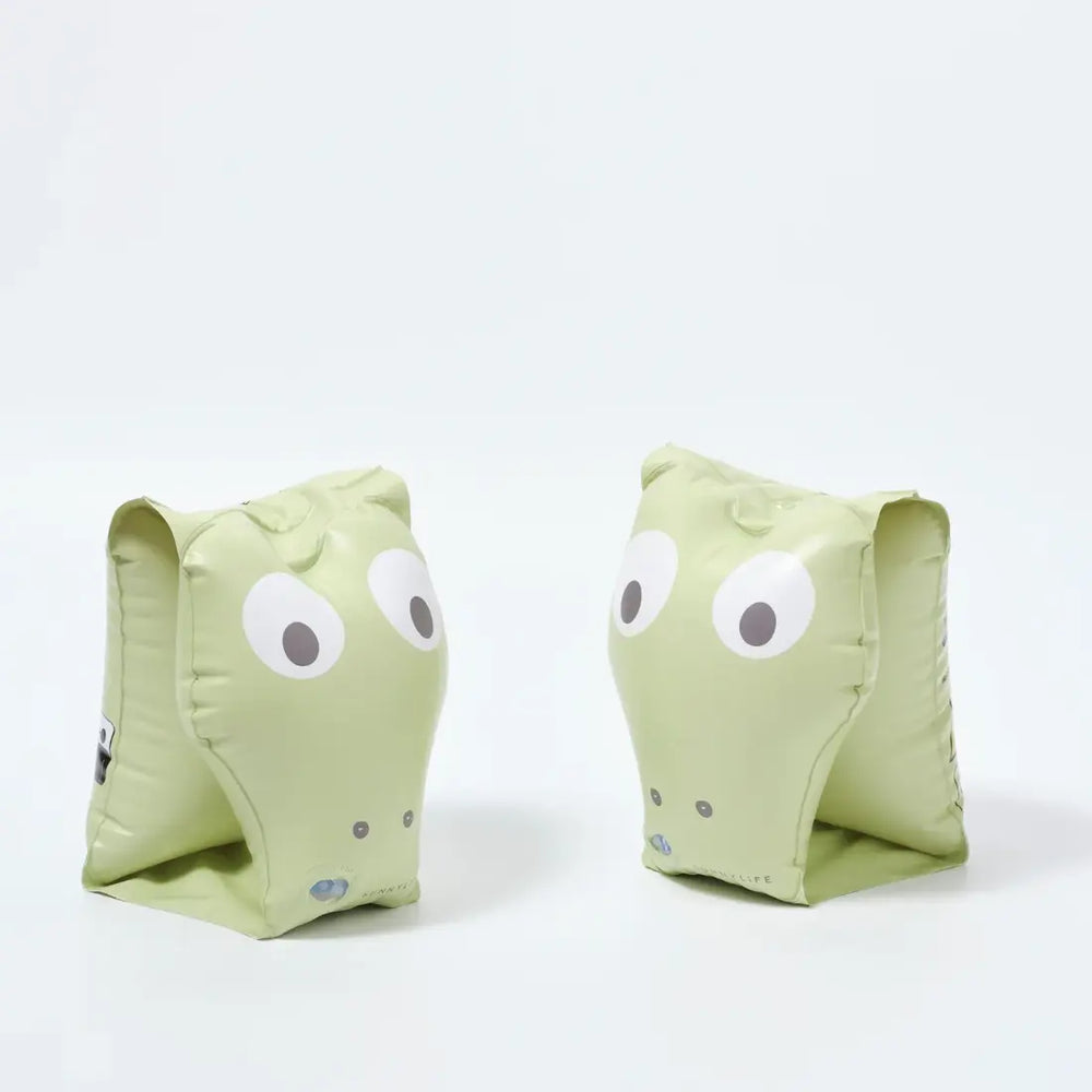 Adventure awaits with summer’s cutest swimming accessories. The Cookie the Croc Arm Bands are here to give children the freedom to swim and play without hassle, boost water confidence, and develop swimming skills. Cute as well as practical, kids will love to make a splash with their easy to inflate, quick to put on, and super comfortable design. Every little one needs a summer companion and these will definitely turn heads with their mega fun crocodile face shape, big bright eyes, and cool khaki hue.