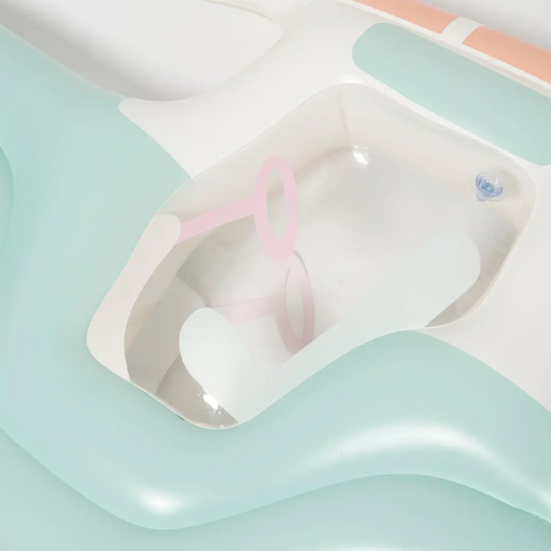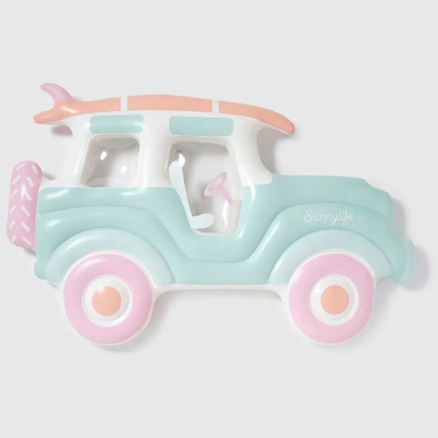 The Beach Buggy Luxe Lie-On Float boasts a trendy design and playful pastel color scheme that will surely turn heads. Crafted from durable, non-toxic PVC, it ensures safety and comfort while you soak up the sun.