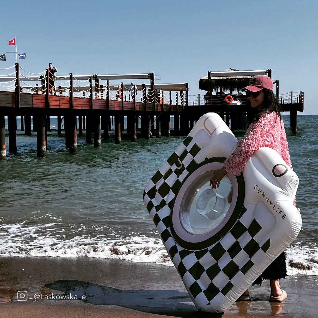 Made from premium PVC, the Luxe Lie-On Camera Float combines durability with environmental consciousness, offering a chic and eco-friendly way to enjoy your summer days.