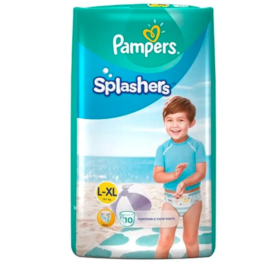 Introducing Pampers Splashers Swim Nappies in Size 5-6, designed with double leg cuffs to effectively prevent leaks around the legs.