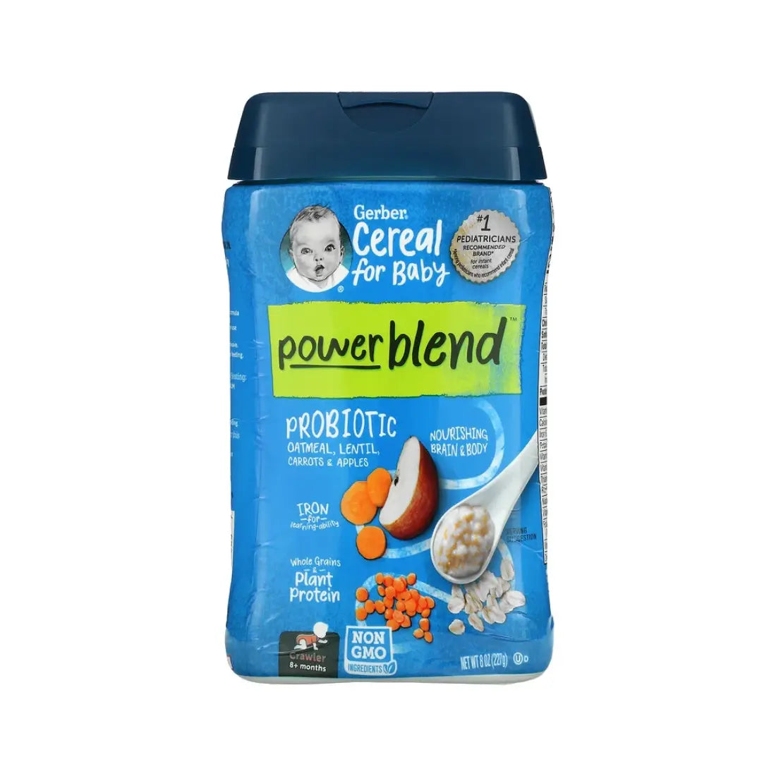 Gerber Cereal Power Blend Probiotic Oatmeal, Lentil, Carrot & Apple (227g)