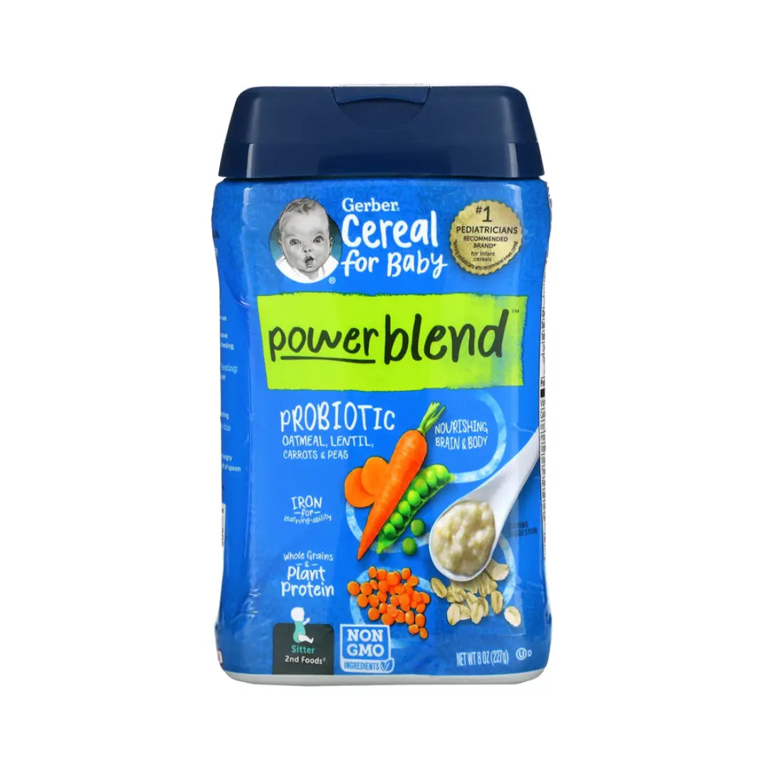 Gerber Cereal Power Blend Probiotic Oatmeal, Lentil, Carrot & Pea (227g)