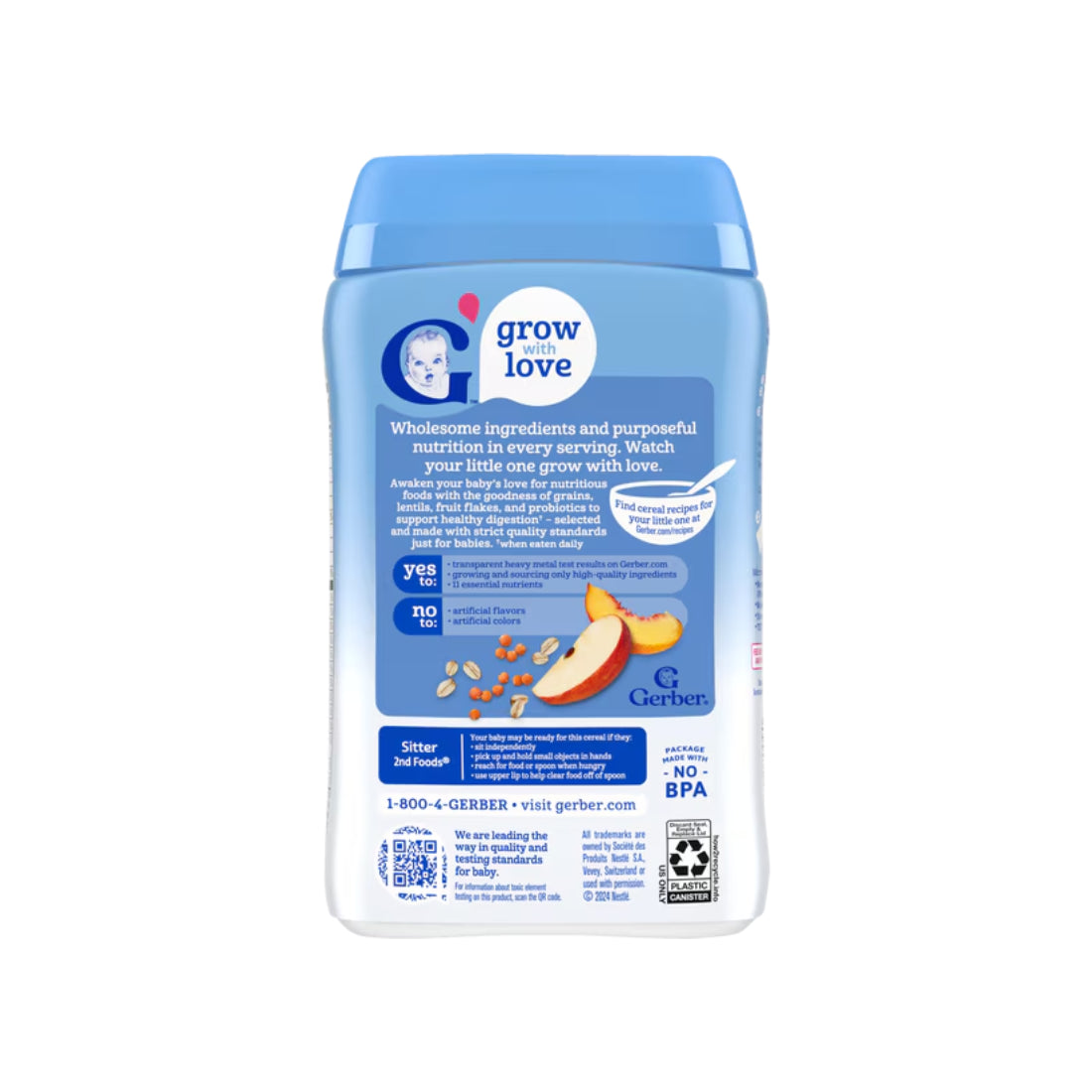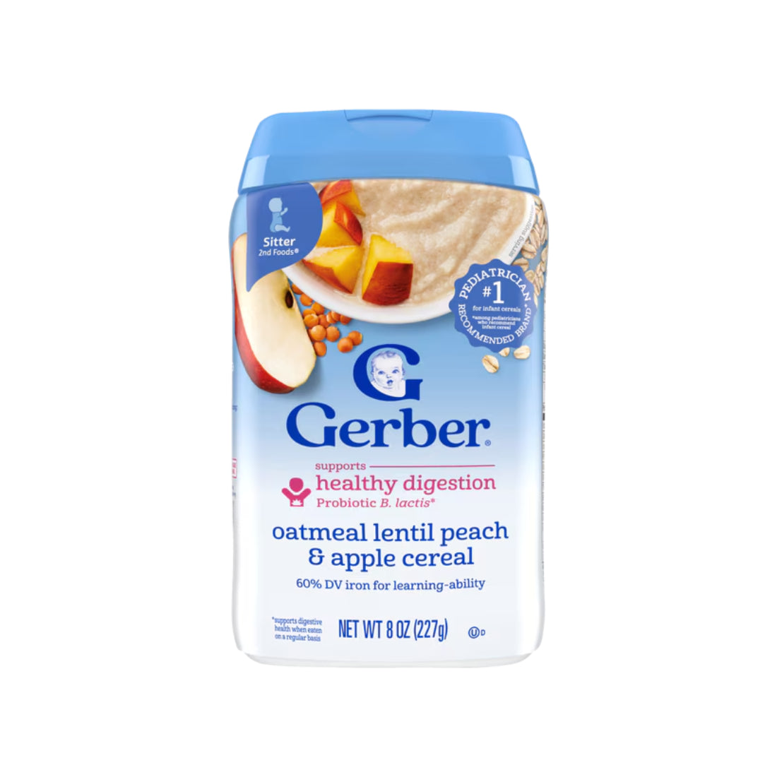Gerber Cereal Power Blend Probiotic Oatmeal, Lentil, Peach & Apple (227g)