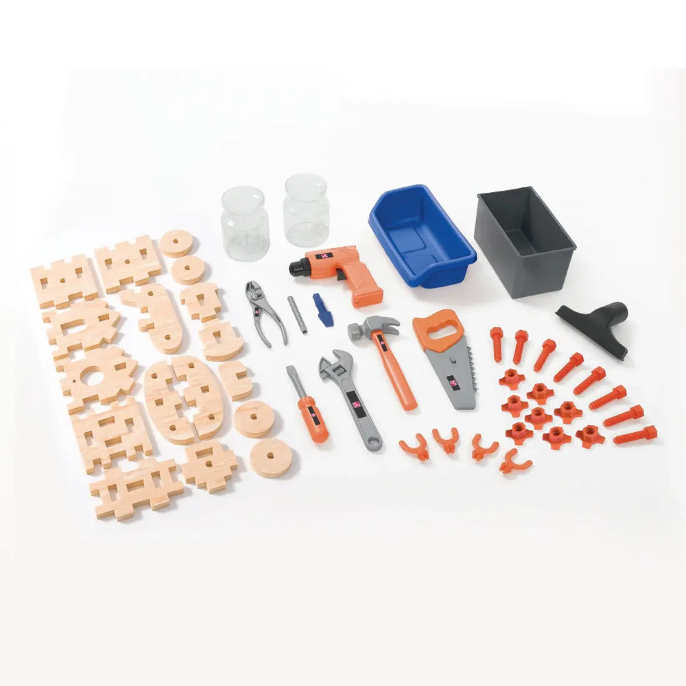 This workshop by Step2 will allow little ones to pretend they're a carpenter or designer as they create wooden masterpieces with Durafoam™. Children can pretend to be a handyman or handywomen as they use their toy tools. This tool workshop for kids is large with plenty of space and accessories for multi-child play. Made in USA.