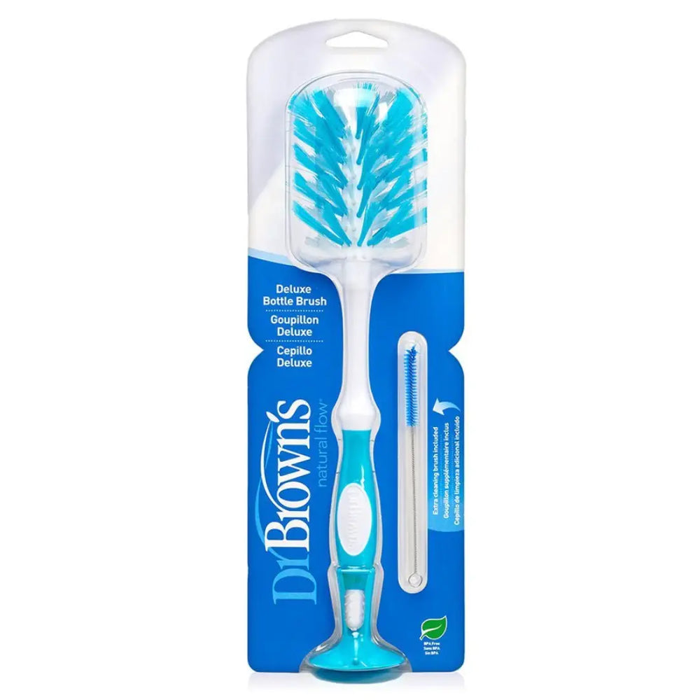 Clean your bottles effortlessly from top to bottom with the Deluxe Bottle Brush, equipped with a combination of soft and sturdy bristles for efficient scrubbing. Its angled design prevents splashing soapy water, making cleaning a breeze.