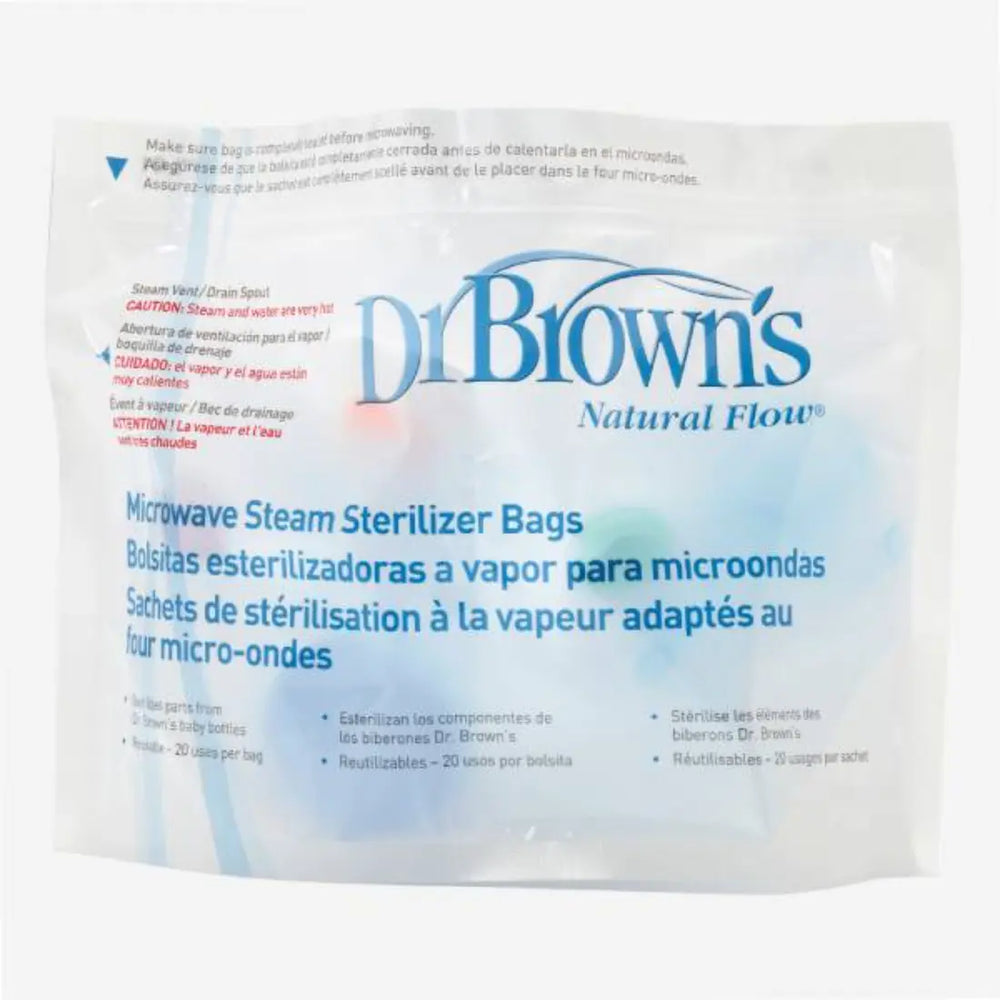 Efficiently sterilize your baby's bottle parts with Dr. Brown’s Bottle Sterilizing Bags. Each bag offers quick sterilization, with the convenience of up to 20 uses per bag. They are safe for hospital use and effectively sterilize bottles, parts, nipples, pacifiers, and training cups, making them perfect for travel when water is added.