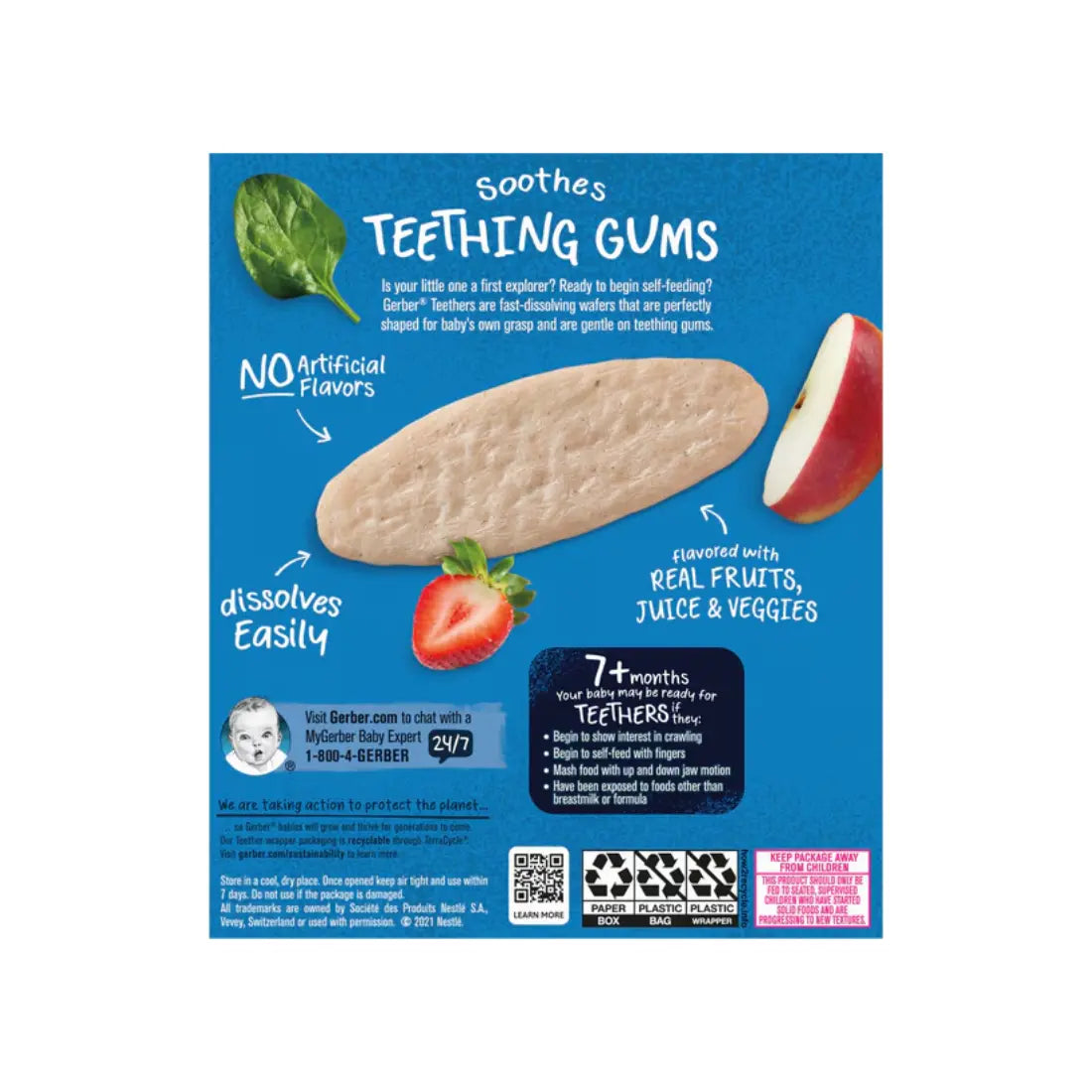 Gerber Teethers Gentle Teething Wafers Strawberry, Apple and Spinach (48g)