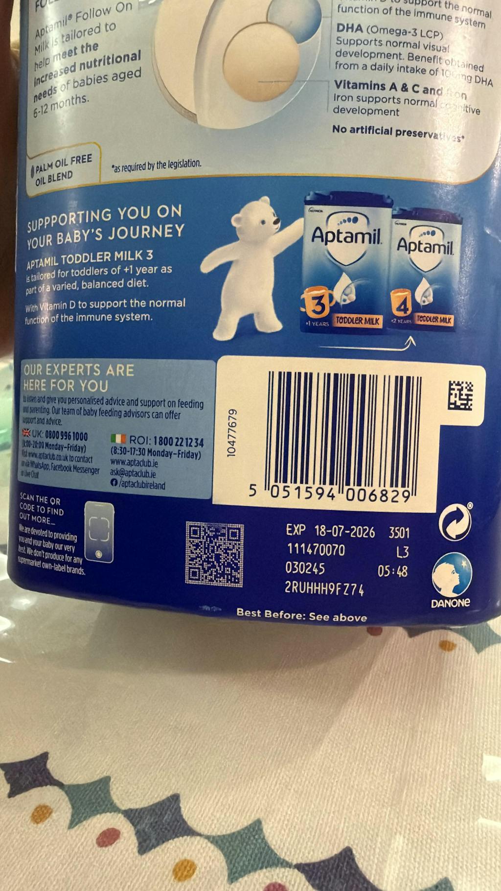 Suitable for babies who are no longer exclusively breastfed, Aptamil Follow On Milk is intended for use only after 6 months of age and should be consumed as part of a varied, balanced diet. Trusted by parents worldwide, it offers reassurance through science-led nutrition adapted for your baby’s next stage.