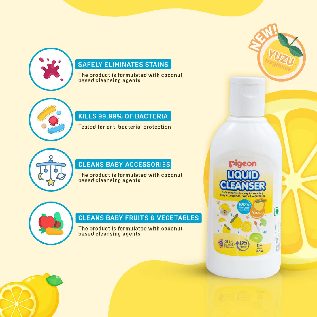 Pigeon Liquid Cleanser Yuzu is a gentle yet highly effective cleaning solution designed for everyday baby care. Formulated to remove stubborn milk residue and food stains, it delivers powerful cleaning performance while remaining safe for delicate baby items and gentle on your hands. Infused with a refreshing yuzu fragrance, it leaves items clean and fresh without the use of harsh chemicals.