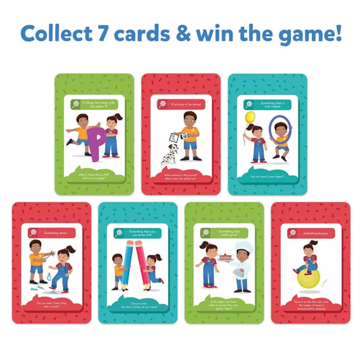 Experience the thrill of discovery with Found it! This innovative twist on a scavenger hunt encourages children to learn as they search for objects around the house based on engaging prompts. Players shout "Found it!" when they locate the object, aiming to be the first to collect 7 game cards.