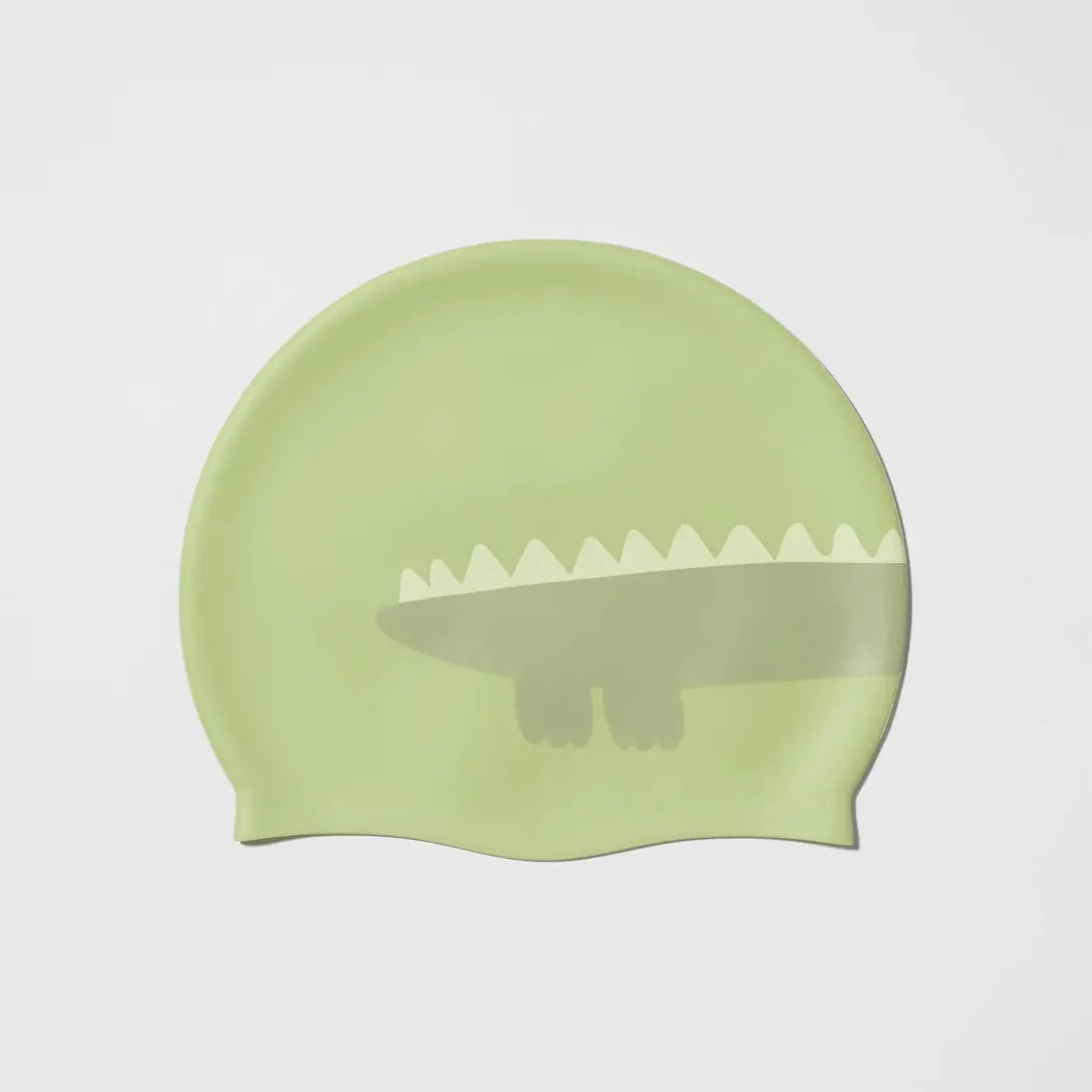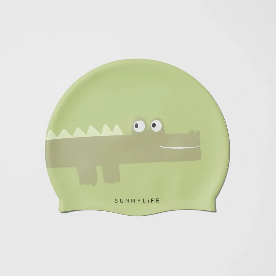 SUNNYLiFE Kids Swimming Cap - Cookie the Croc Light Khaki