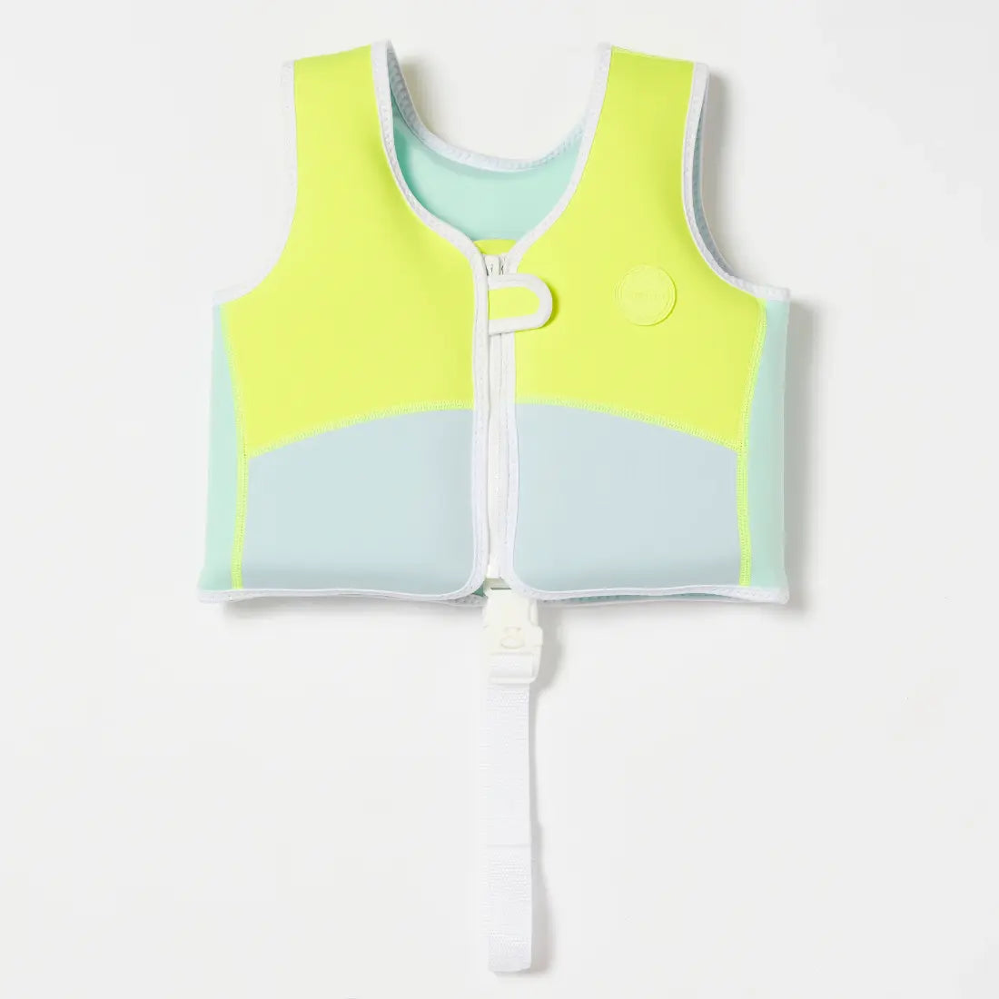 SUNNYLiFE Salty the Shark Swim Vest (1-2) - Aqua Neon Yellow