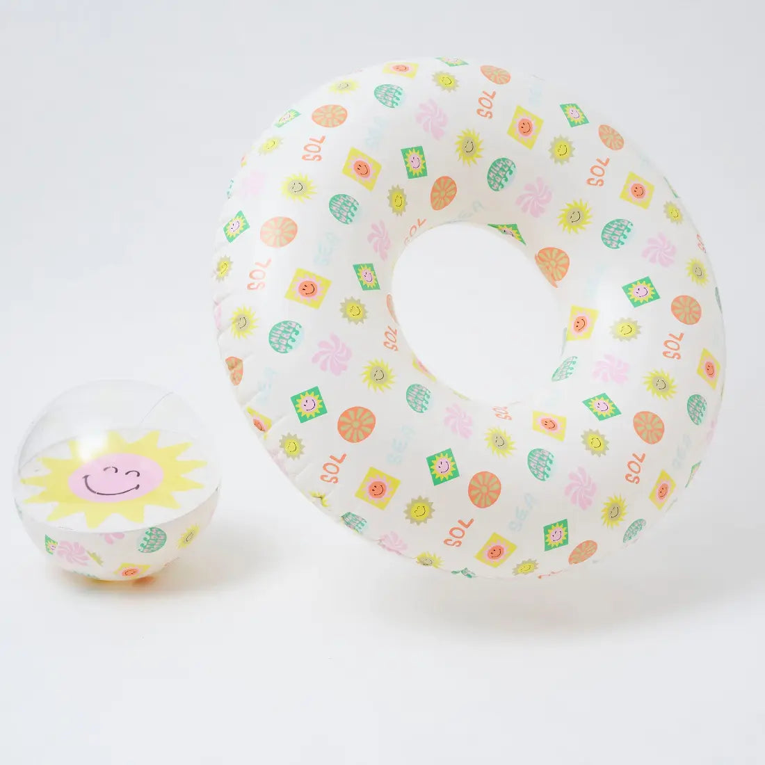 SUNNYLiFE Pool Ring & Ball Set - SmileyWorld Sol Sea