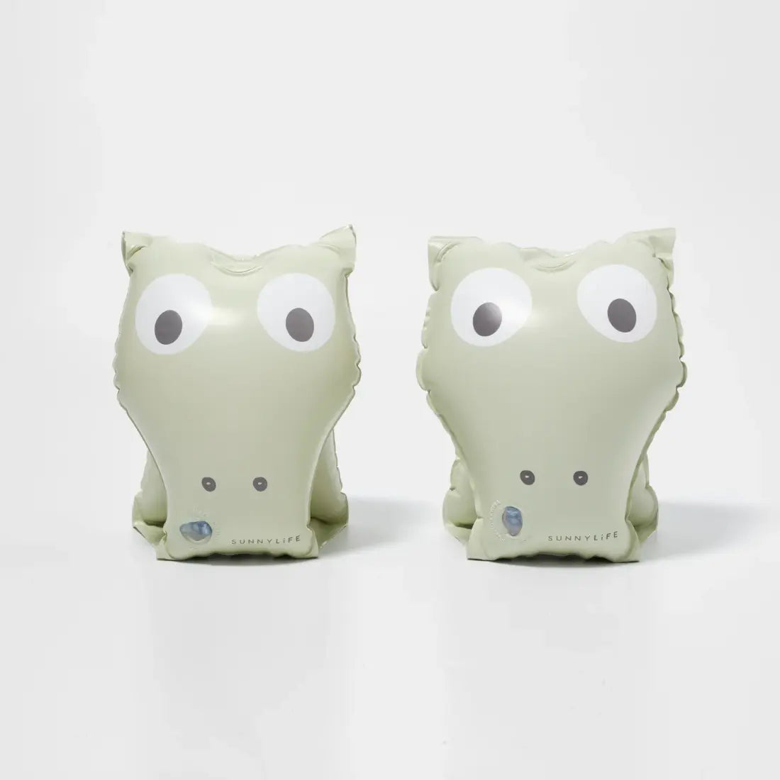 SUNNYLiFE Kids Inflatable Arm Bands - Cookie the Croc Light Khaki