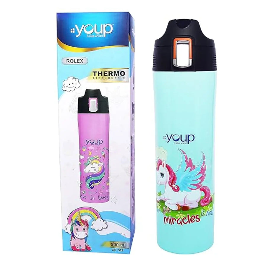 - Unicorn-themed ROLEX water bottle with a 500 ml capacity.