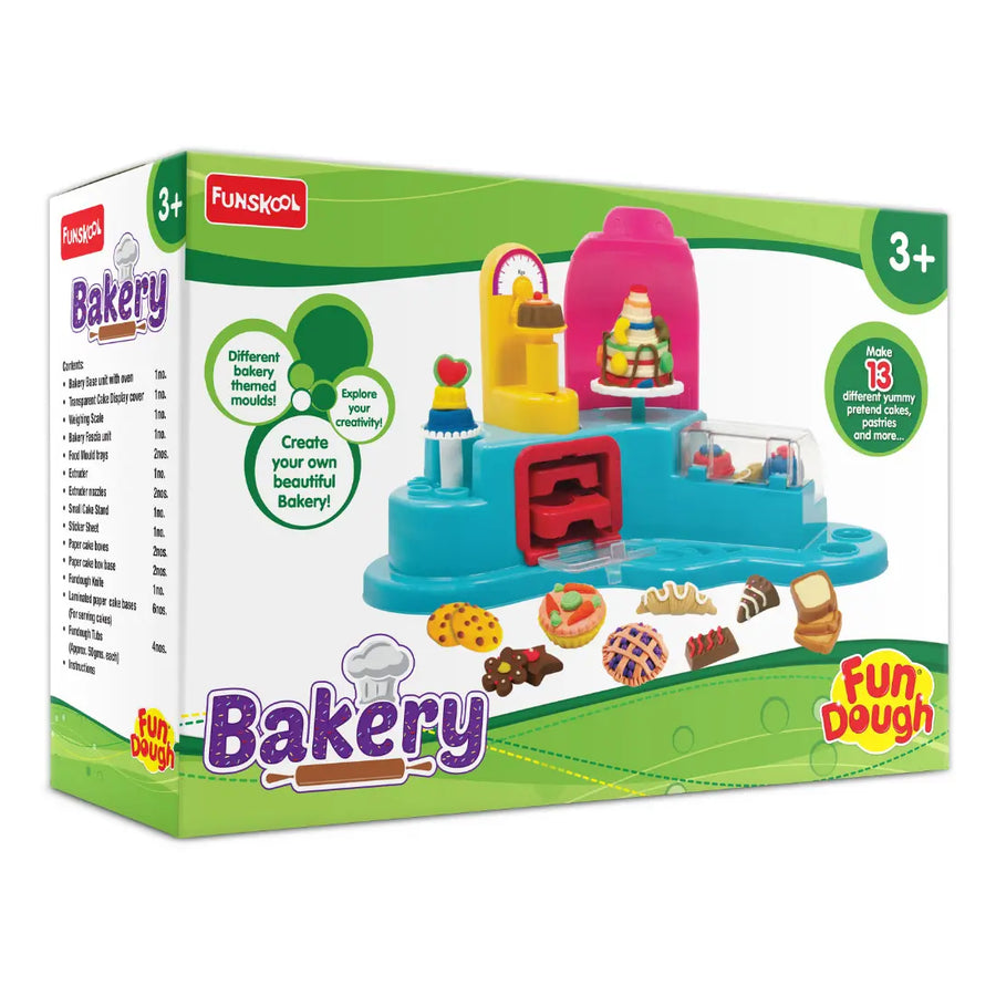 Calling little bakers to try their hand at Fundough's Bakery! Whip up your favorite pastries, pies, or any other baked goods that catch your fancy. Decorate them with dough fondant and icing. With the special extruder provided, you can use your creativity and skills to try out new, exciting designs and recipes!