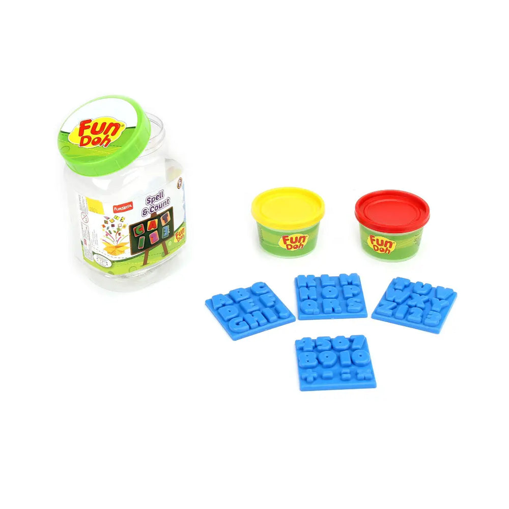 Fun Dough Funskool presents activity kit for the creative mind. A kit with plenty of play dough in 2 attractive color tub with learn alphabet and number shapes. All of which go into a fabulous reusable jar.