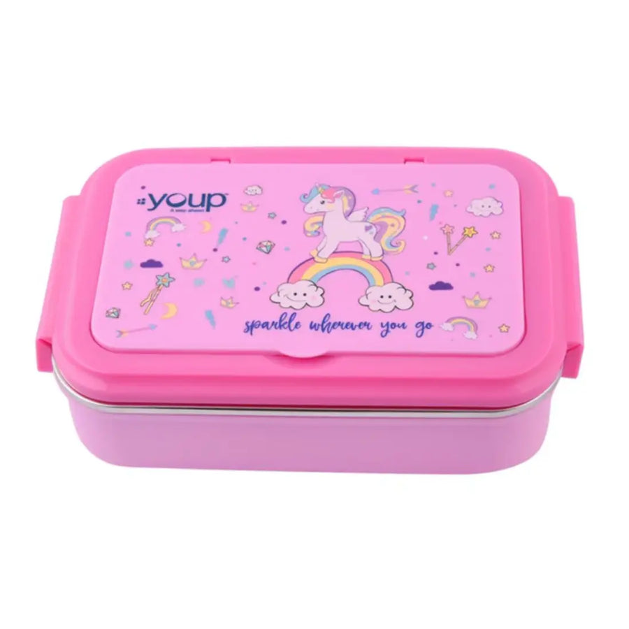 - Features a push-to-open upper panel with a spoon and fork inside.