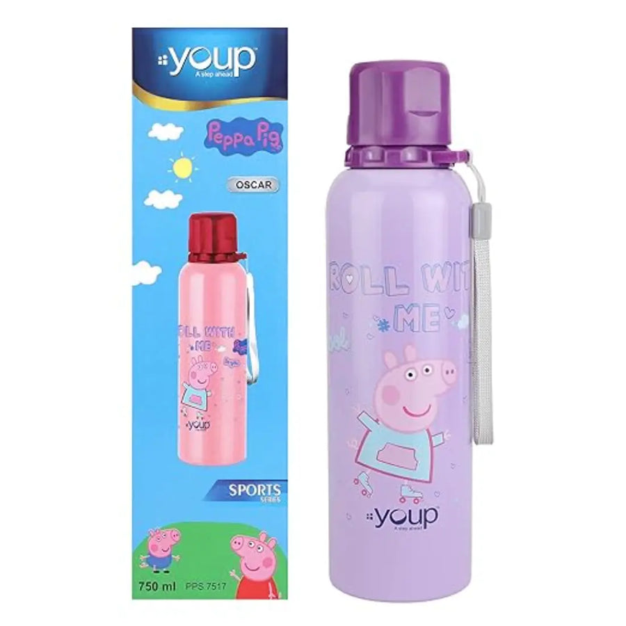 The OSCAR by Youp is a 750 ml stainless steel water bottle designed for kids, featuring a popular Peppa Pig theme. Made from high-quality stainless steel, this bottle is suitable for both hot and cold beverages, making it perfect for everyday use.