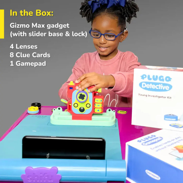 HOW IT WORKS - The front camera of your device reads the movements on the kit. Use Gizmo Max to inspect the crime scene, find clues, store evidence, unlock doors with secret codes, and catch the culprits to become the best crime-solver in town!