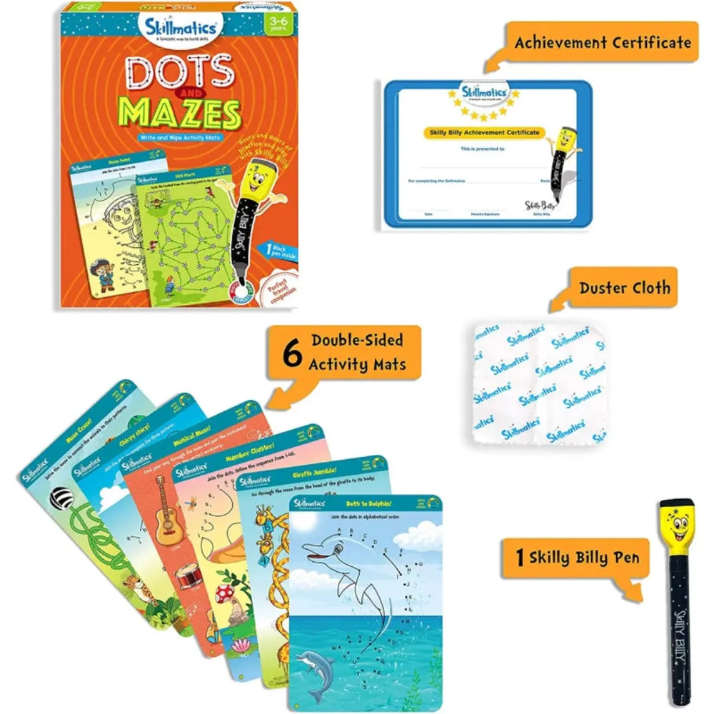 Dots and Mazes is an excellent educational resource aimed at improving children's visual tracking, motor skills, and reading capabilities. This versatile learning tool is perfect for keeping children engaged while traveling or at home.