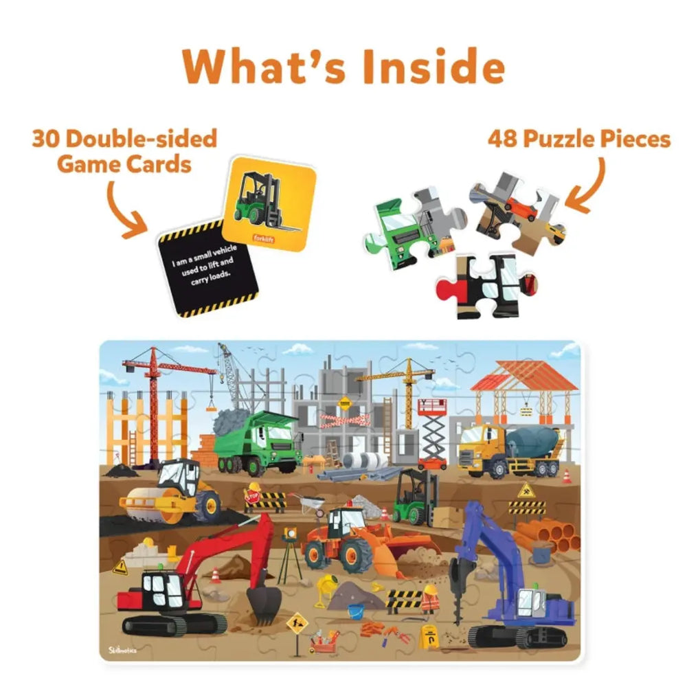 Ignite your child's interest in construction and building with Skillmatics' Piece & Play: Floor Puzzle Game! Ideal for children aged 3-7, this engaging game offers a collaborative play experience that's perfect for friends, family, or solo play.